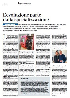 La Sina Luigi srl si racconta: la storia, i macchinari, il metodo di lavoro e i progetti per il futuro, all’interno della rivista Meccanica, di Golfarelli Editore (Speciale Mecfor – Maggio 2023).